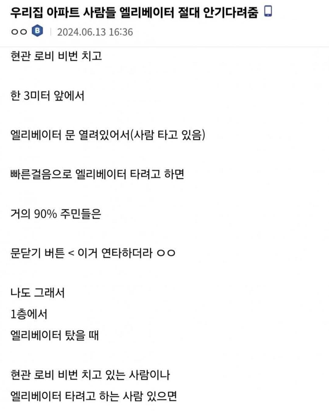 비회원 커뮤니티 0 5 5시간전 우리 집 아파트 사람들 엘리베이터 절대 안 기다려줌.jpg 같이가줘여ㅜㅜㅜ나 데꼬가~~~ 출처 : https://m.bboom.naver.com/best/get?boardNo=9&postNo=4363979 이 글을 SNS로 공유하기