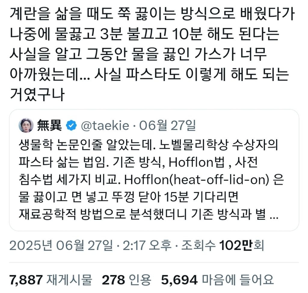 비회원 커뮤니티 0 8 7시간전 지금까지 계란 삶을 때 썼던 가스가 너무 아까워.jpg 오 해봐야지 출처 : https://m.bboom.naver.com/best/get?boardNo=9&postNo=4360426 이 글을 SNS로 공유하기