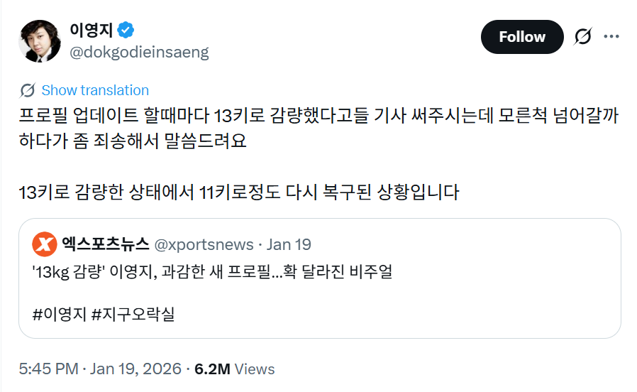 비회원 커뮤니티 0 11 01.30 17:00 헐 이영지가 뉴스기사 해명함 이영지가 다이어트 뉴스 솔직하게 해명함ㅋㅋㅋㅋㅋㅋ 괄괄이 역시 쿨하다.. 아래는 원래 기사 제목 출처 : https://m.bboom.naver.com/best/get?boardNo=9&postNo=4362461 이 글을 SNS로 공유하기