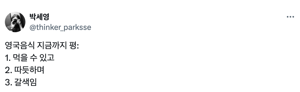 비회원 커뮤니티 0 4 3시간전 영국 음식은 이걸 말하는 걸까... 출처 : https://m.bboom.naver.com/best/get?boardNo=9&postNo=4365605 이 글을 SNS로 공유하기