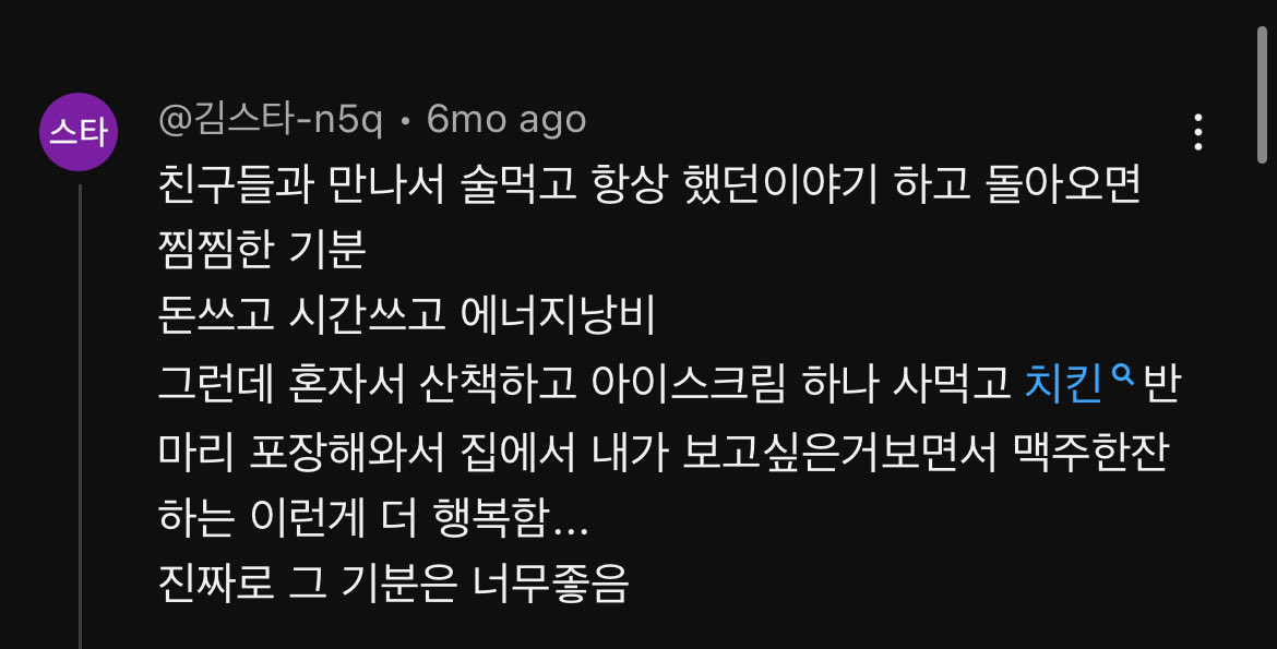 비회원 커뮤니티 0 2 3시간전 I라서 이런 거 아니지 다들 그런 거지 출처 : https://m.bboom.naver.com/best/get?boardNo=9&postNo=4366719 이 글을 SNS로 공유하기