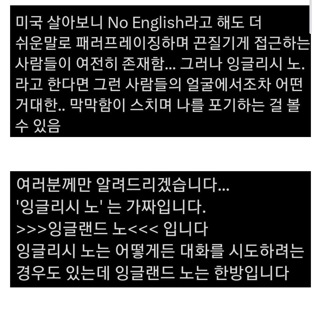 비회원 커뮤니티 0 3 2시간전 말거는 미국인들 입닫게하는 주문 잉글랜드 노 출처 : https://m.bboom.naver.com/best/get?boardNo=9&postNo=4370286 이 글을 SNS로 공유하기